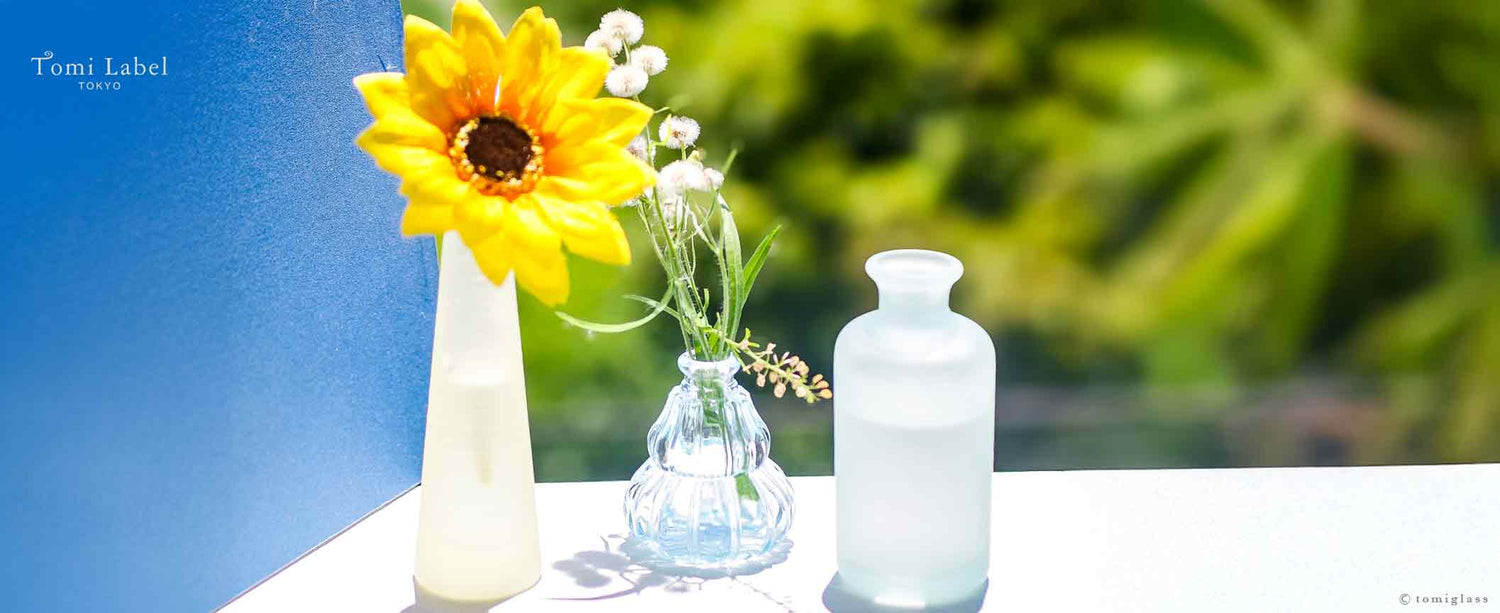 花を飾るための花瓶「ヴィンテージ小瓶」の在庫が少なくなってまいりました。季節感を演出するインテリアとして当店でも人気です。今では生産がむずかしい複雑なカタチや、表面をマットにするフロスト加工は、昭和の「ものづくり」への、工夫と柔軟性を感じさせます。この記事では改めて当社の「ヴィンテージ小瓶」の魅力を深掘りしてみます!