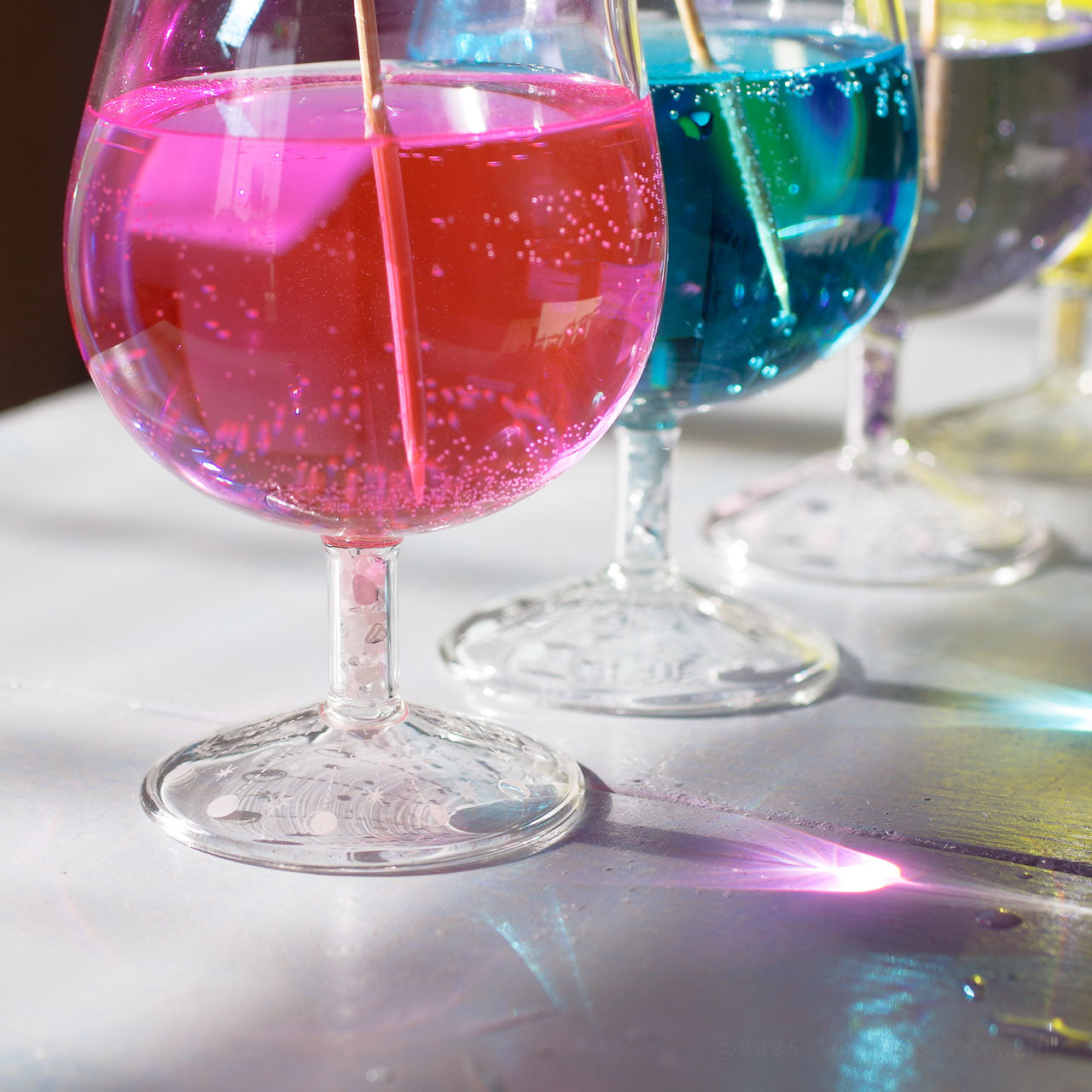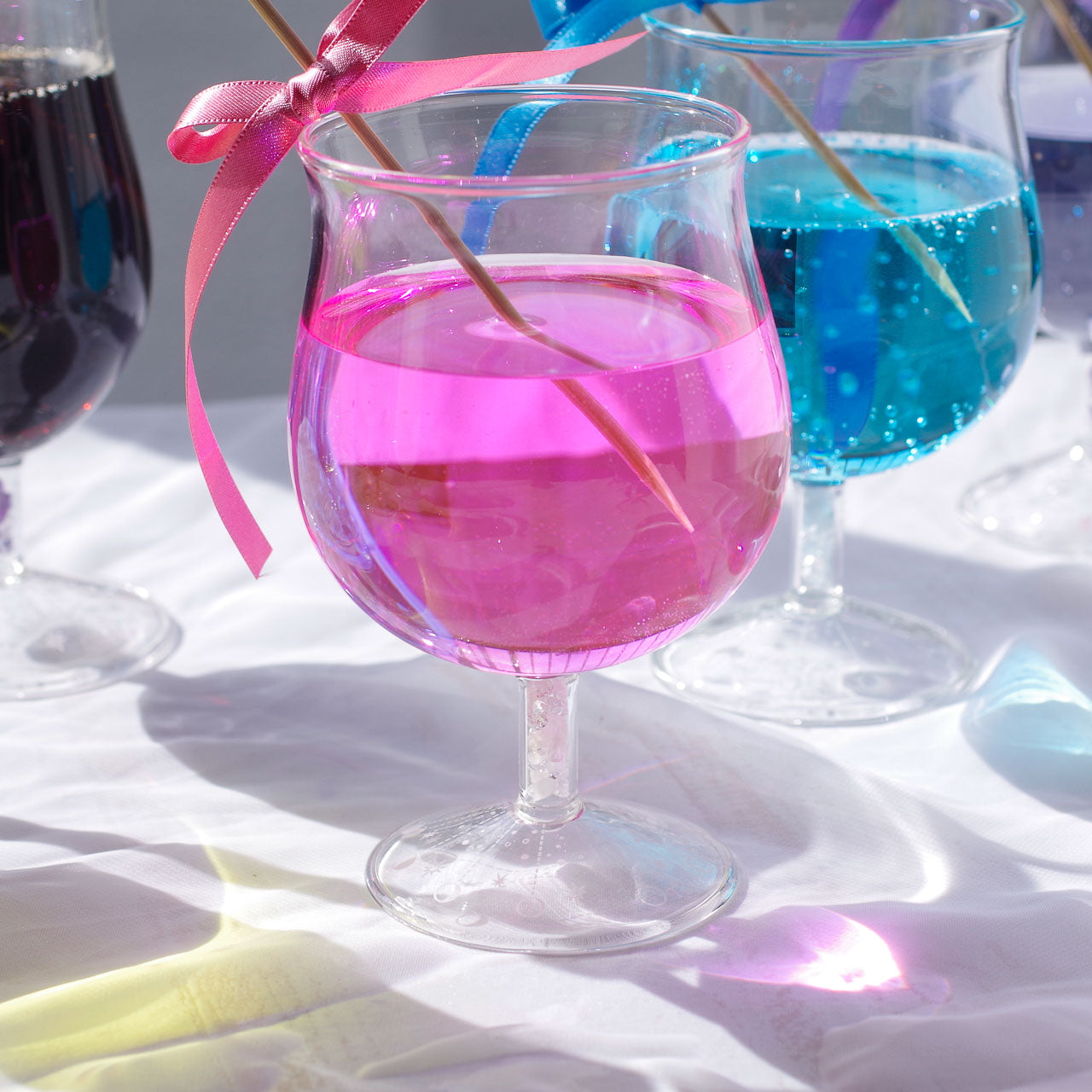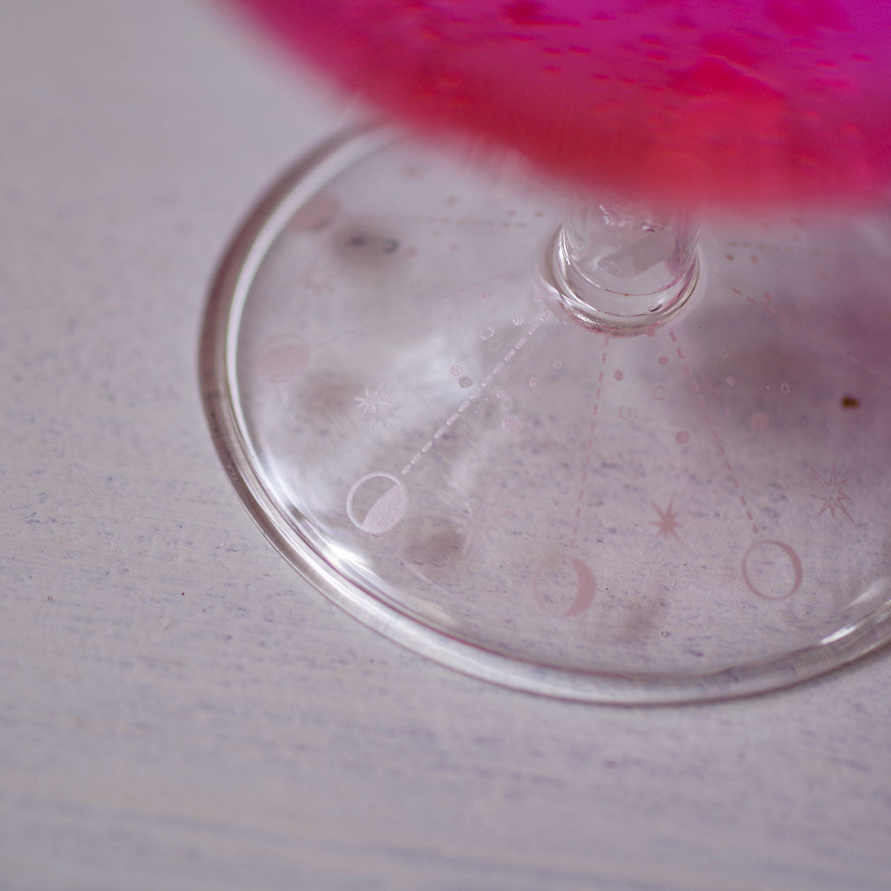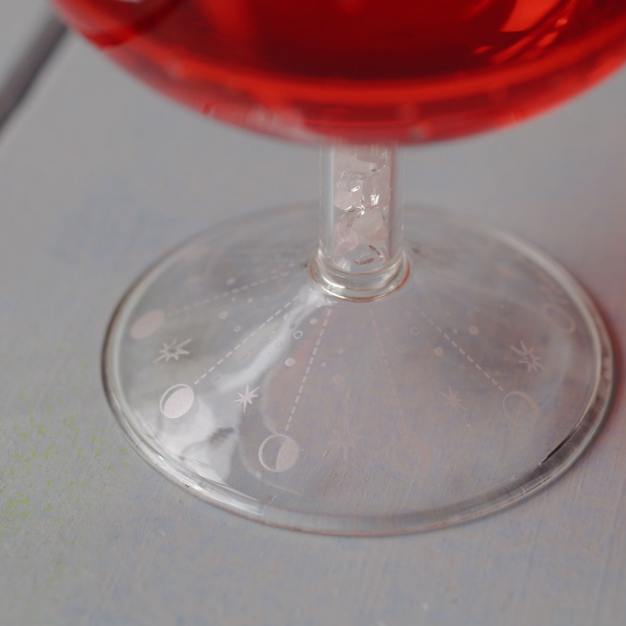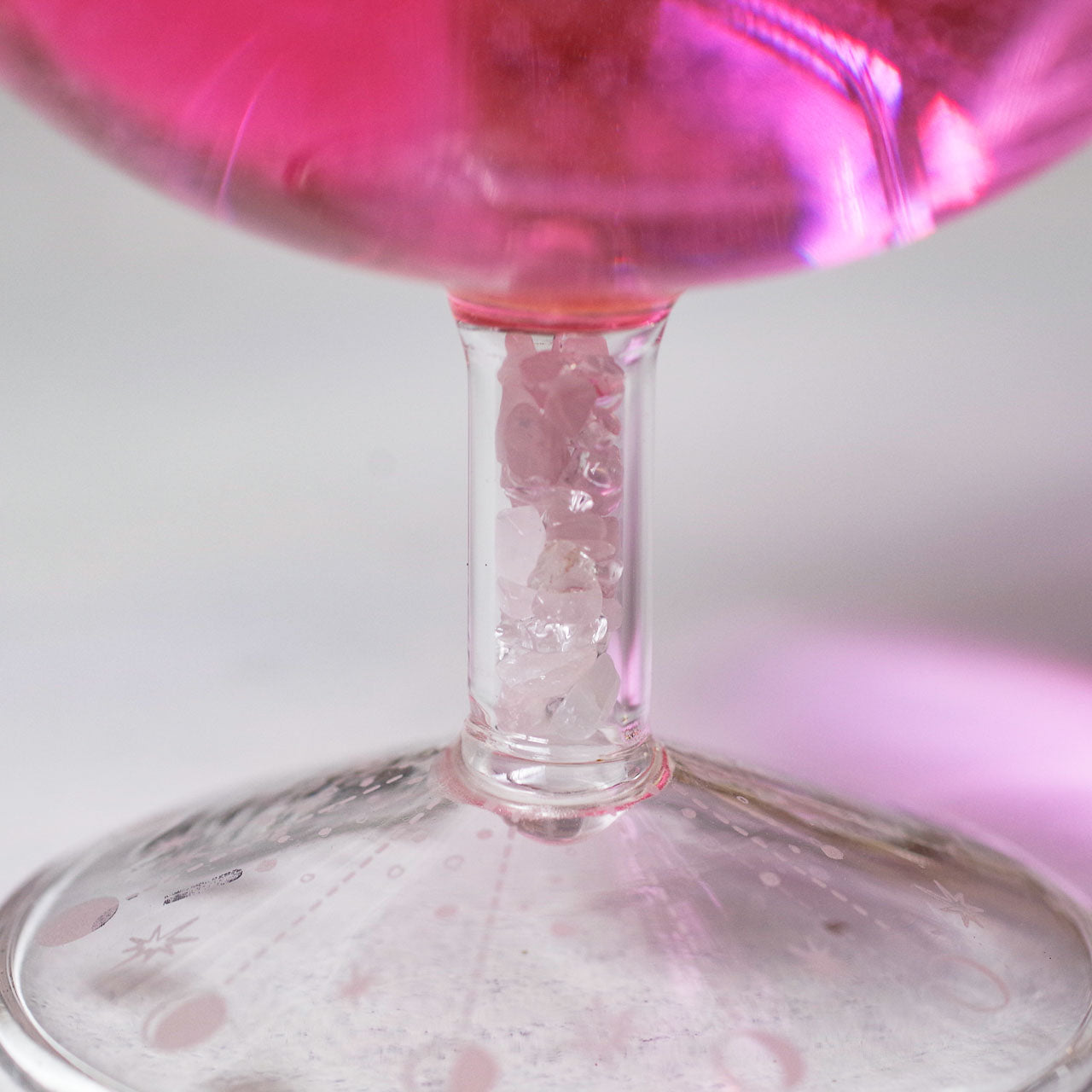 グラスの脚に、本物の天然石・ローズクォーツ入ったワイングラス。