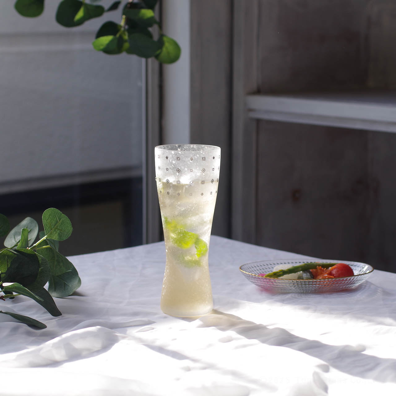 薄づくりの口当たりで喉越しよく、フロスト加工を施したガラスが、キンと冷えたビールをいっそう引き立てます。