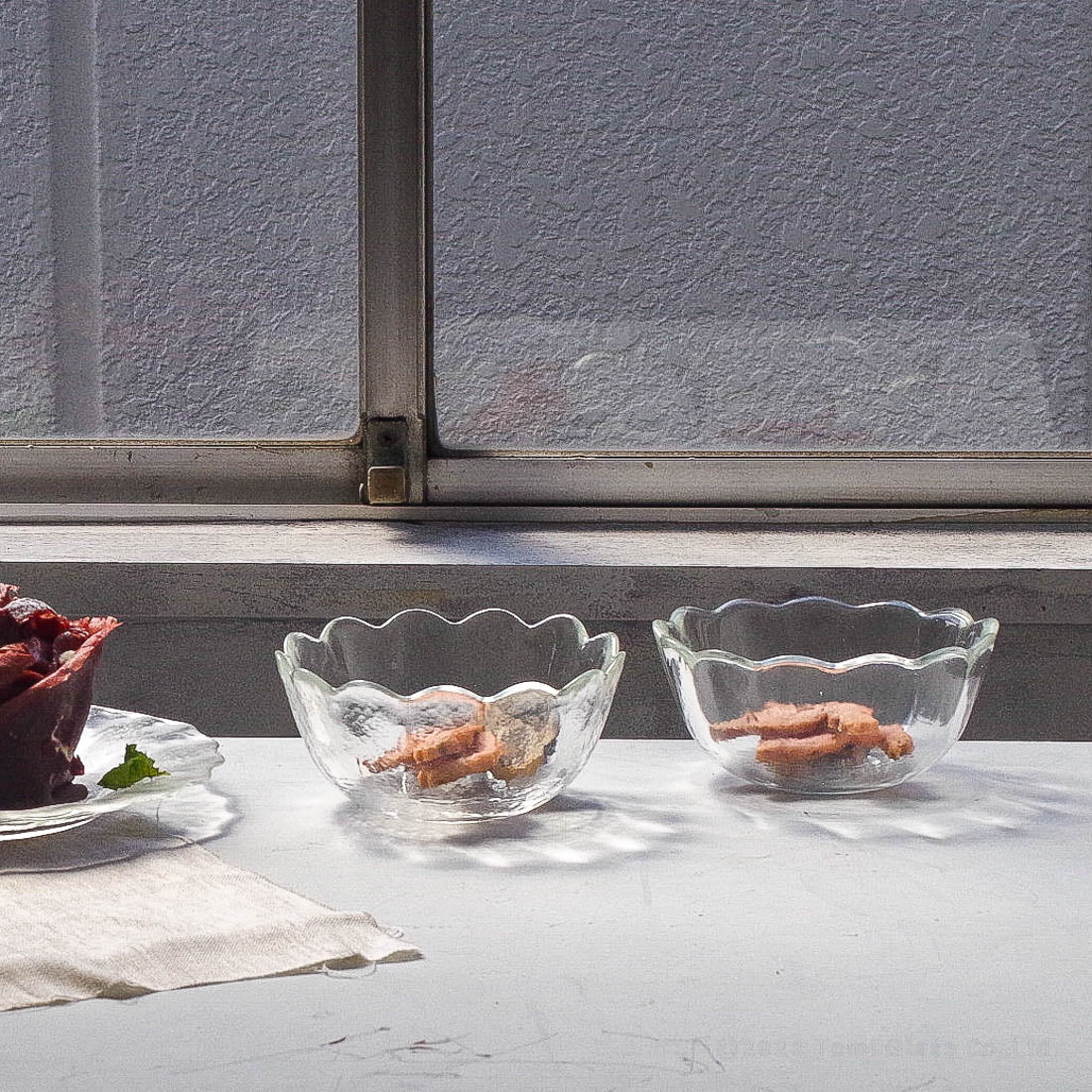 ふちのなみなみした型は、程よく厚みのあるハンドメイドガラスの良さを引き出すためにデザインしました。