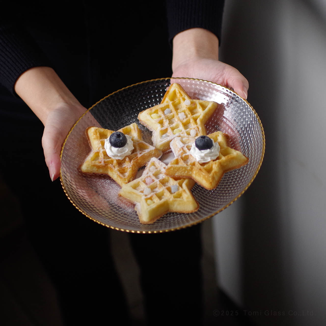 職人が1点ずつ手をかけてフチに金を巻いています。ふだんの食卓に取り入れやすい、シンプルでちょっぴりゴージャスなデザインになっています。