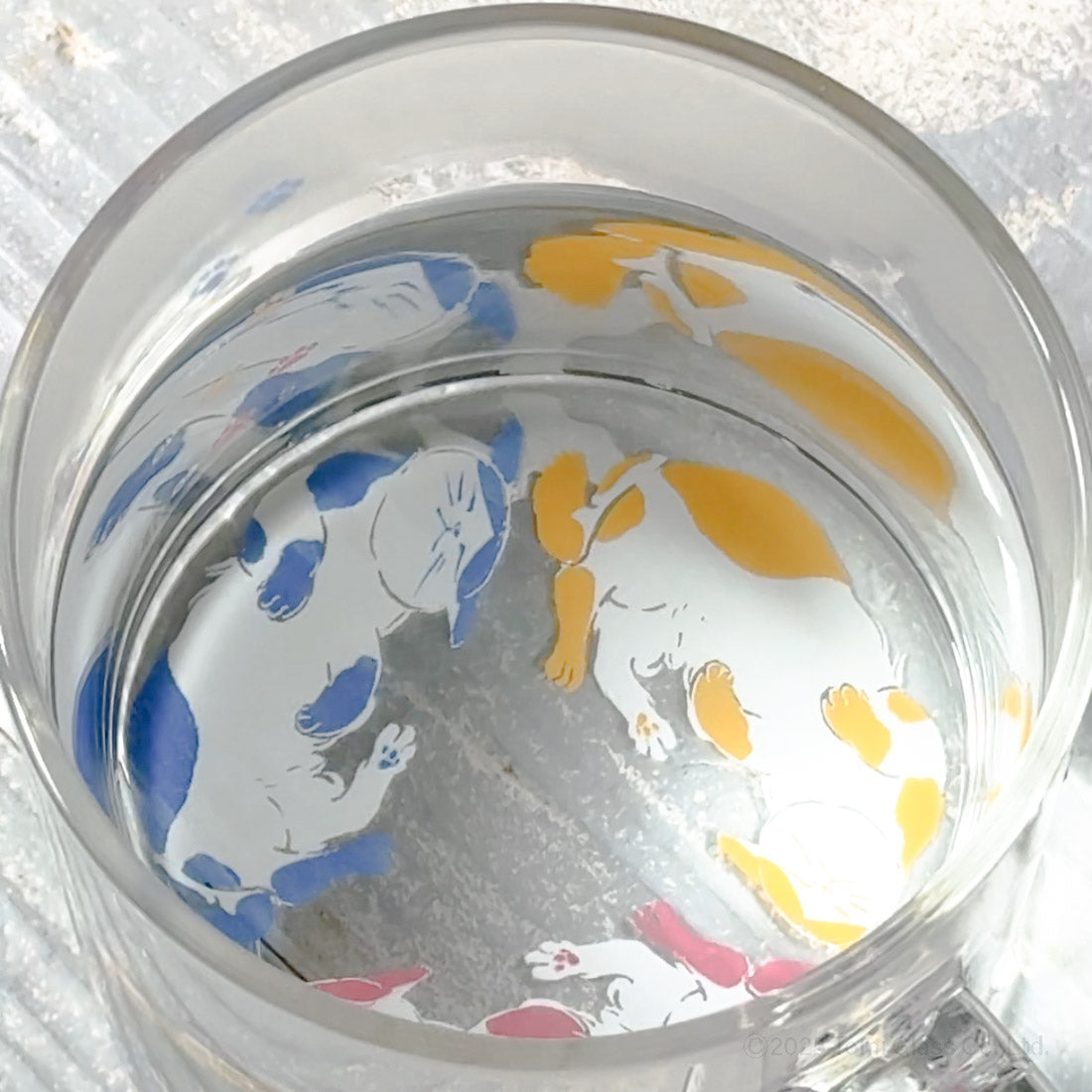 “溶けネコ”デザインは、サンプル作りの途中で偶然生まれたもの。「土鍋や金魚鉢にすっぽり入ってくつろぐ猫のようだ。」と盛り上がりました。ハチワレ模様は縁起が良いそうです。日常に小さな癒しが届きますように。illustration:Anna Okanami(2025)
