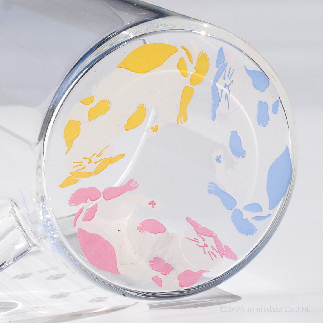 ご自宅でドリップコーヒーを淹れる際、「つい薄くなってしまう…」という経験、ありませんか?そんな作者の悩みから“肉球の目盛り”というアイデアが生まれました。たっぷりサイズの耐熱マグに、カラーの肉球をポイント使い。ハチワレ猫のゆるんだ表情にこだわりました。