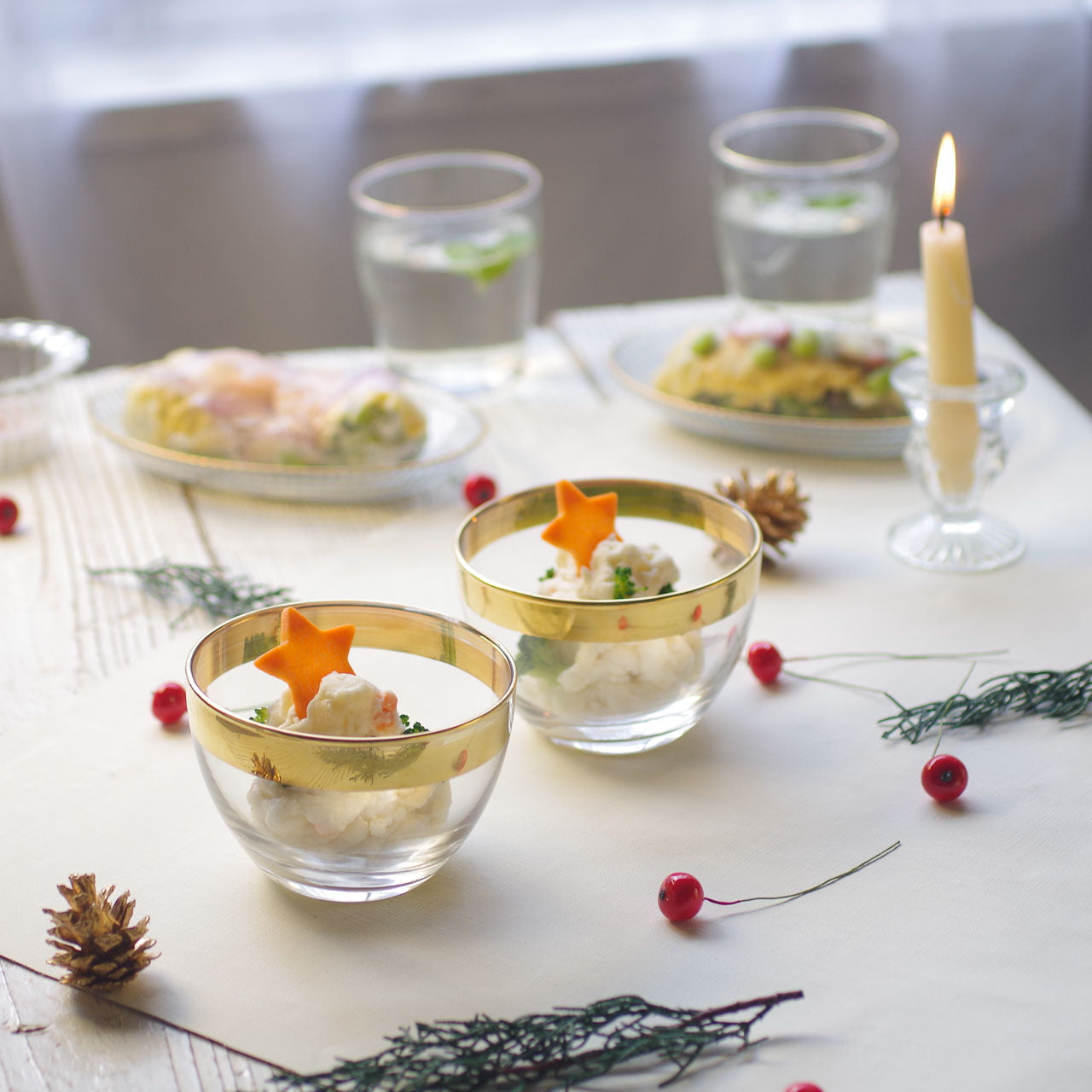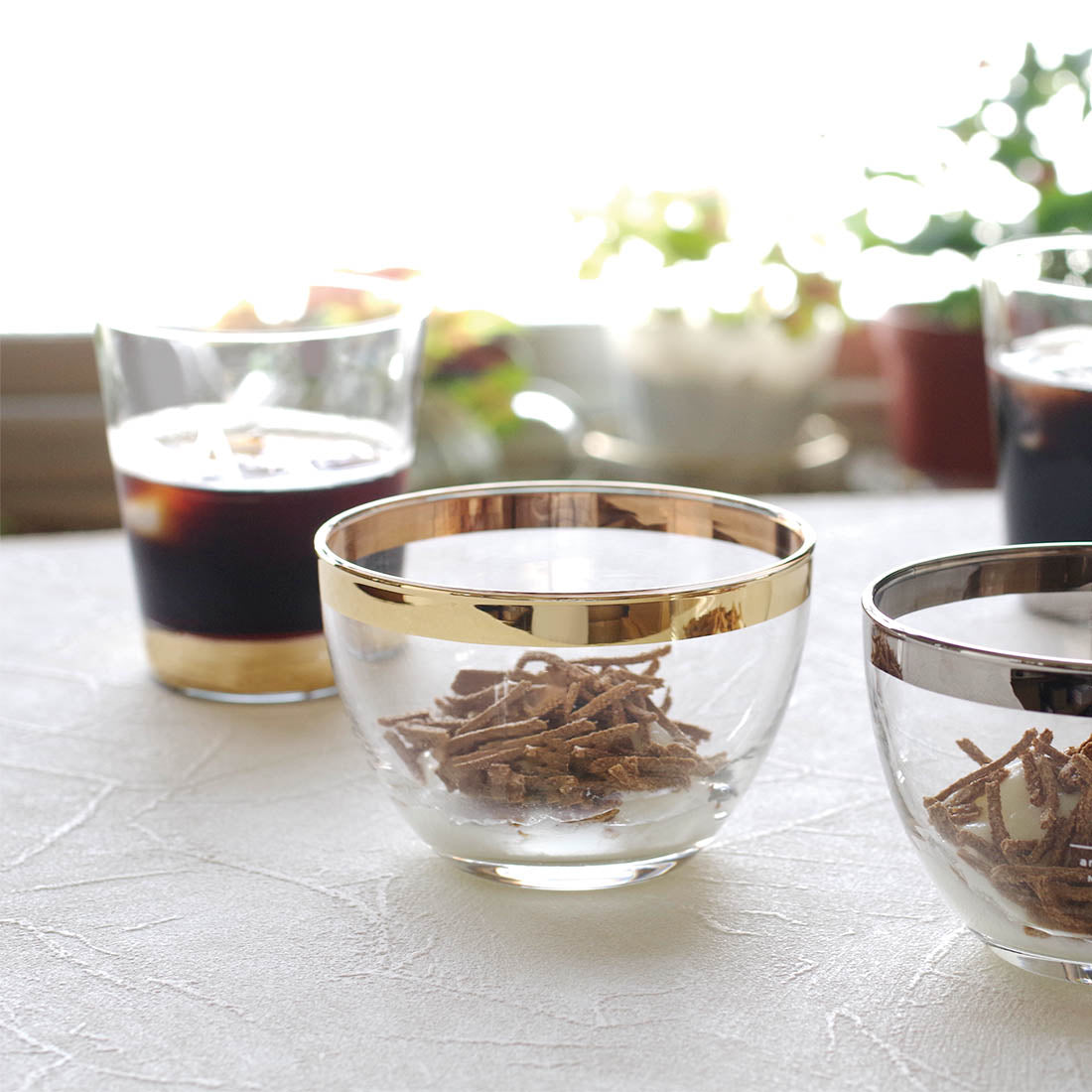 どんどん高騰している本物の「金」を1cmの幅で巻いた、とってもゴージャスなガラス食器です。