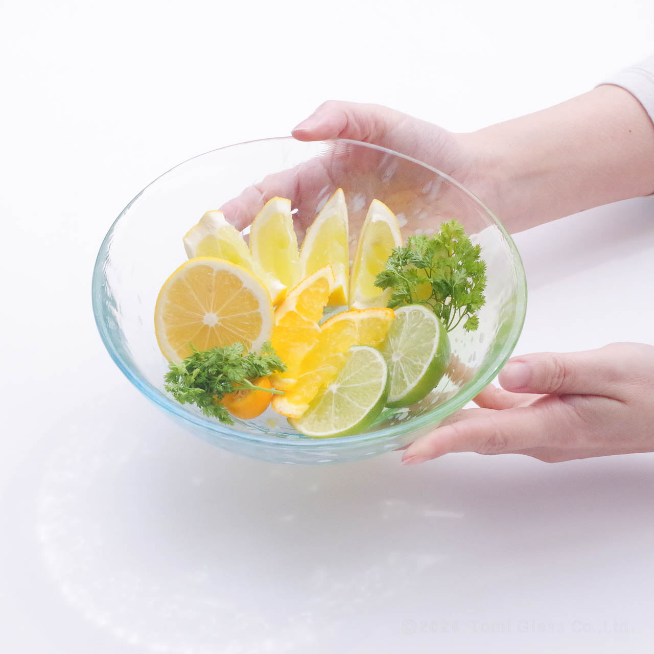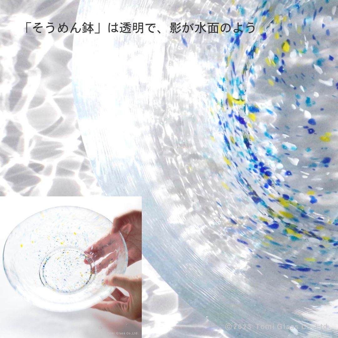 そうめん鉢には大きめの泡が入ります。ハンドメイドのためサイズや形状や色に多少バラつきが出ますが、クラフト特有の味わいとしてお楽しみください。個体差を理由とした返品や交換はお受けできませんので、ご購入前に 江戸硝子の特徴をご確認ください。