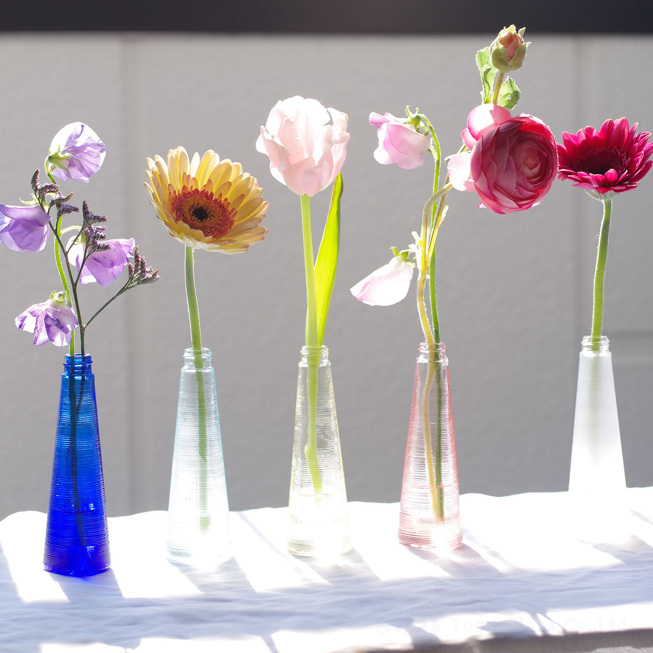 クリアフロスト、ピンク、ブルー、イエロー、ルリの5色セットです。