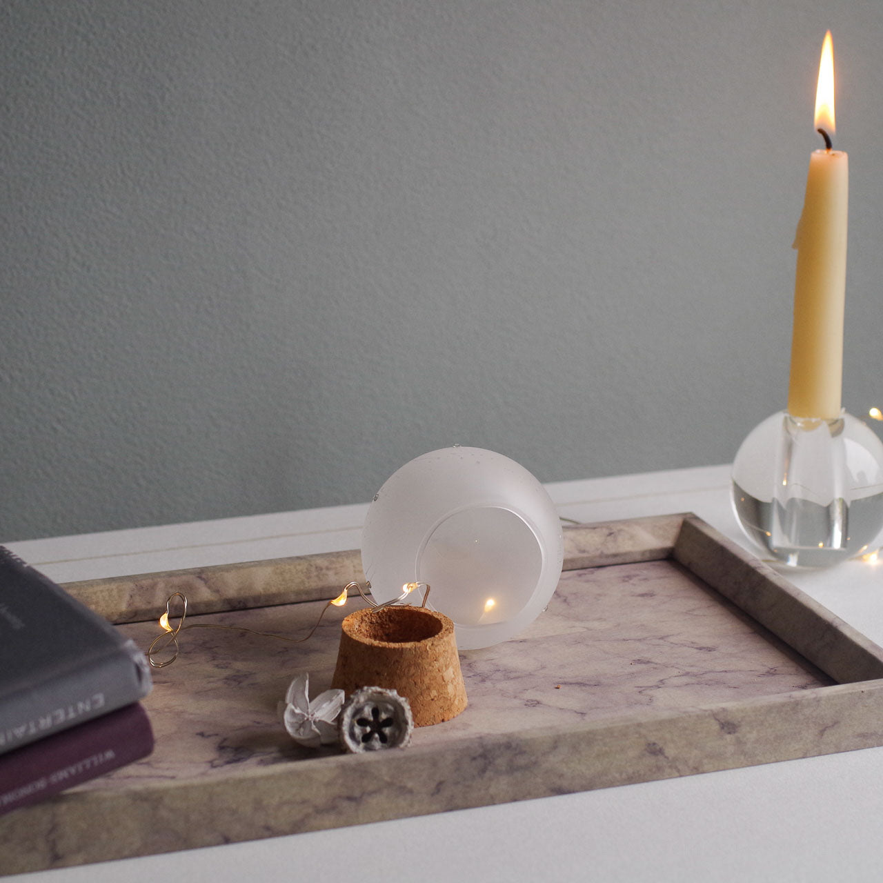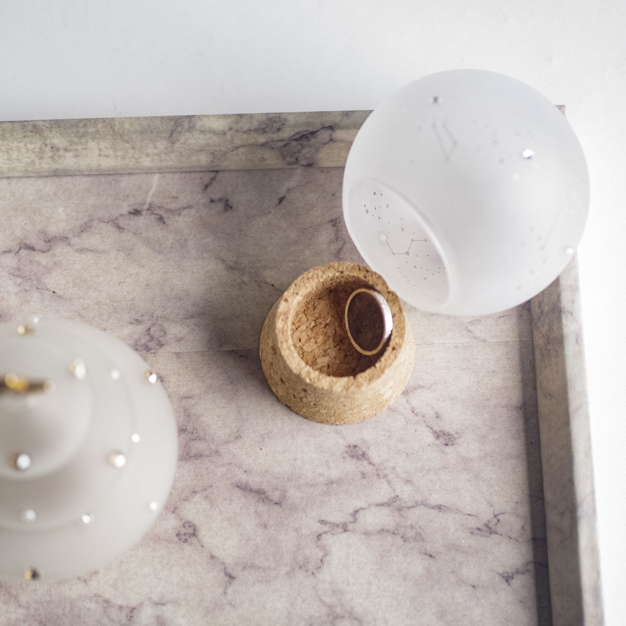 コルクとガラスでつくった、やさしいぬくもりを感じるオリジナルデザインの小物入れ。スノードームのやわらかなフォルムが、インテリアとしてお部屋に馴染みます。