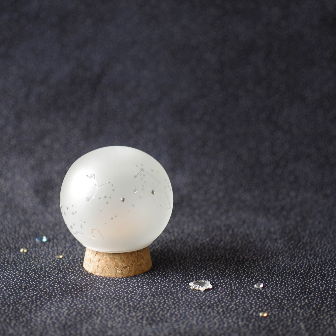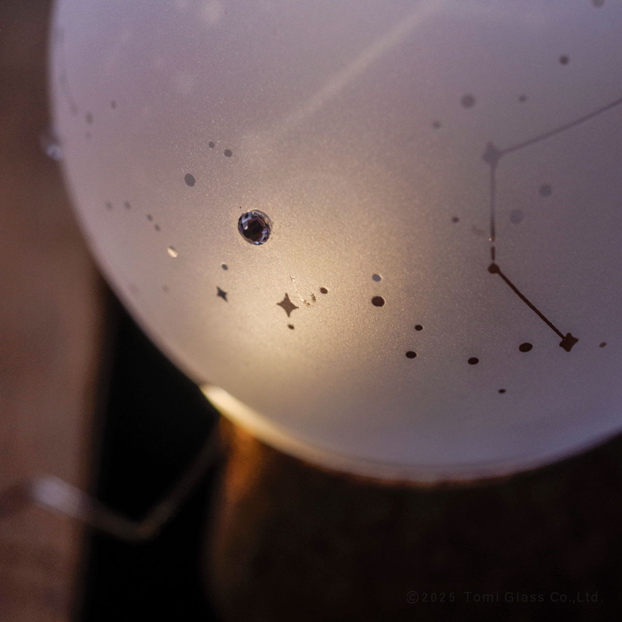 星座の模様はサンドブラストで丁寧に刻まれ、ラインストーンはひとつひとつ手作業で貼り付けられています。